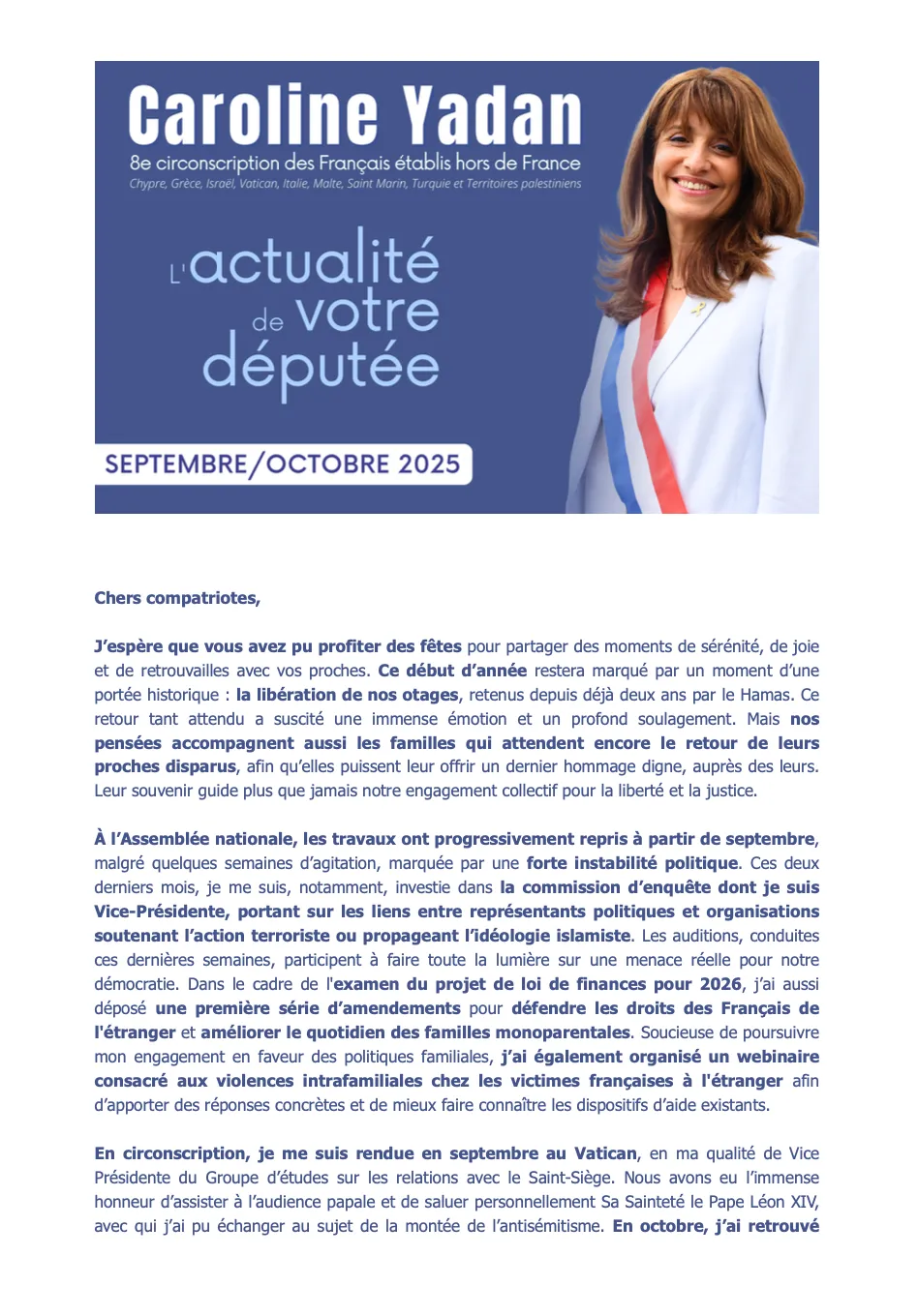 Lettre d'information Novembre / Décembre 2025 Israël